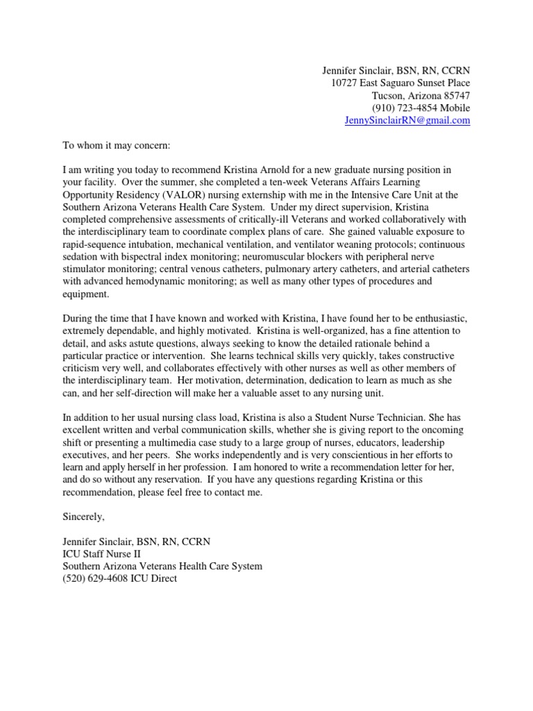 Nurse Residency Letter of Recommendation from s3.studylib.net These types of letters will focus more on the nurse's educational background and application of critical skills learned in their undergraduate program. Friedrich bass as a staff nurse in your fine medical institution. Kayla has a clear vision for her future in nursing and is following in the path of her documents similar to letter of recommendation docx. Tips for asking for a nursing reference letter. This letter helps nursing students to apply for a job or get admission for further education. Maybe you want to recommend a student or employee or want to apply for an academic program. For the nursing graduate seeking that first job, i encourage them to get their references and or letters of recommendations from faculty, clinical instructors, employers and or. It is with great honor that i recommend mr.
